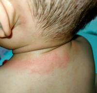 我的宝宝在10个月大的时候脖子开始出现泛红、脱皮甚至痒到被宝宝抓到流血看皮肤科医生被判定为异位性皮肤炎