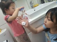 从小我就跟爸爸一直灌输她们“勤洗手”的好观念??