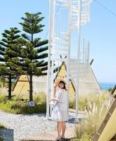 -来到山度空间一定要慢慢往上爬到最高的观景台上(˶‾᷄⁻̫‾᷅˵)就能一览无遗太平洋的海景?最重要的是千万不能错过摄影师帮忙拍摄的 #天空之镜 ☁️坐在透明水晶球秋千配上蓝天白云这画面真的好壮观?啊每天共有两个时段会帮忙拍摄?一张会收费?$50元唷~另外除了天空之镜之外必拍的还有三角木帐篷⛺️、旋转楼梯等等~