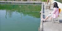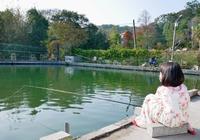 话说~这B池也太好钓了吧!妍宝贝才刚将鱼竿放下鱼池大概2分钟.立刻就有鱼儿上钩.让她好有成就感!