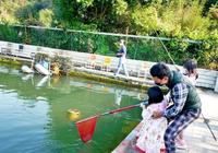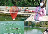 钓到鱼后.将钩子解开后.以网子接住.再放回池子里~贴心提醒:钓到鱼记得要放回池里.若想买鱼可以到柜台秤斤