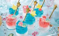 有口感清爽的果冻杯以及生乳酪蛋糕。都是以代表Kiki&Lala的粉红色及粉蓝色为主要色系,还有搭配可爱的星星装饰。