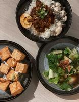 #蚵仔卤肉饭$80#虱目鱼肚煎$150#炸豆腐$50#烫青菜$40