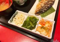 饥肠辘辘的爸爸,肯定要帮他点一个cp值高,份量又足够的,这是老板娘特别推荐的。送上来爸爸的眼睛都亮起来,一大碗热腾腾的白饭,一片日式鲭鱼;表皮烤的酥酥脆脆,里面鱼肉也是多汁,不会乾涩。