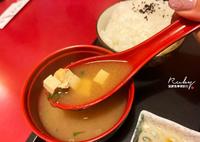 还有味增汤和红豆汤各一碗。味增汤里面有一些豆腐,属於台式味道的味增汤。