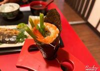 他们家的饭卷类都算是很受欢迎的菜色,有一点类似美式风格的寿司,上面铺上满满的鲑鱼用炙烧方式,加上美式辣酱、里面又有小黄瓜,让鲑鱼片的制烧油味和美式辣酱的融合,清爽不腻口。如果想要搭配芥末也是另外一种不同的味道。
