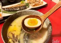 汤头算是咸味适中用九州香料炖煮的汤头,不会像日本喝到的那么咸,满符合tw人口味。一碗拉面用料也是给满大方的,有溏心蛋、笋丝、玉米、木耳丝和叉烧猪肉片2~3片。