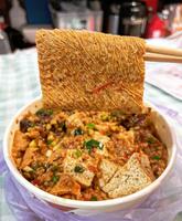 #蒜香豆皮豆皮是我老婆最爱的品项,本身我也很喜欢豆皮,他们的豆皮是里面最有嚼劲的,搭配香辣带劲的酱汁,我变打文章边吞口水?