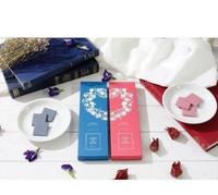 这款同样使用了调温白巧克力,再加上农园种植的木槿花所制成的粉末,形成了拥有独特酸味的「连结幸福的红色巧克力」。而一盒内共有四片红色、四片淡红色,以及一片白色巧克力。