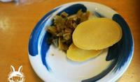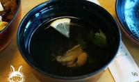 除了有一盒饭外还有附日式腌菜以及一碗鳗鱼肝汤
