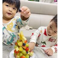 晚上的时候做了水果圣诞树,在做的时候一直觉得好难好不像,结果硕硕玩完玩具跑来说『妈妈你在做圣诞树哦?』瞬间给了妈妈信心?,顺利把水果圣诞树完成!