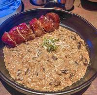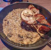 这是我们在场吃完最意犹未尽的一道料理!牛肝菌菇做成的酱汁相当浓稠!比起一般香菇味道来的强烈,饭粒的口感吃起来是Q软的,不是粒粒分明且有硬度的那种。搭配外面少见的鸡肉卷,意想不到的组合,吃起来相当惊艳!