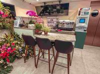 一进门才意识到这不就是我们最常去的便利商店场景吗!熟悉的便利商店咖啡招牌、银行标志,取代了原先的CityCafe、中国信托银行,换上了放感情咖啡以及放感情银行,加上被花丛围绕的便利商店更让人误会走进一间花店)误