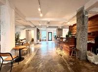 工业风格的装潢,店内保留了建筑的外观,带有斑驳的老旧感加上许多粗犷的痕迹,,一楼整体以白色以及木纹色调为主,加上超大落地窗采光,餐厅视觉上非常宽敞明亮舒适,整个给人反差很大,