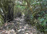 从竹子湖公车站顺着「大梯田」指标走即可抵达青枫步道入口,高架的栈道沿着谷地的小溪而行。