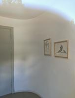 窥视门内的建筑手稿,与不知道谁(我猜应该是建筑师埃里希‧孟德尔颂)的画像。