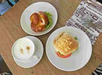 天气热让人食欲不佳,转进一间咖啡厅,我打算用面包和饮料决定当我这天的午餐,第一次点餐我说了:acupofLatte加上一点比手画脚总算点好餐,结果居然送来热拿铁!这么热再喝热拿铁,我会不会阵亡?不知道是不是热过头?送过来了拿铁反而还好,没有很热,下次要记得说「icedlatte」店家才会制作冰拿铁!