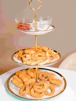用英式下午茶三层架摆放的炸物根本超好拍!且每一道炸物都相当美味,放凉后依旧好吃!且最上层还有附上番茄酱、胡椒盐、松露酱三者蘸料,可以自由组合成自己喜爱的风味!