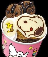 也有限量贩售的联名款圣代。上面放了超级可爱的SNOOPY巧克力片还有巧克力豆饼乾。