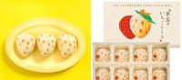 「银座草莓蛋糕」颜色与东京香蕉一样,外型则做成了草莓形状,内馅是「草莓酱」与「卡士达奶油酱」双层口味。