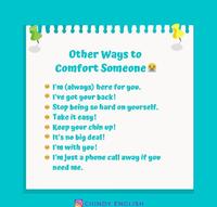 Otherwaystocomfortsomeone?其他安慰人的方式:?I'm(always)hereforyou.?I'vegotyourback!?Stopbeingsohardonyourself.?Takeiteasy!?Keepyourchinup!?It'snob**deal!?I'mwithyou!?I'mjustaphonecallawayifyouneedme.