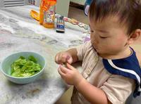 先告诉宝贝一起设计菜单的小规则,如我们家4口人,避免隔夜菜,所以3菜为主:蛋白质(煎鱼)、蔬食(蒜炒高丽菜)、蛋白质和蔬食(姜丝丝瓜炒虾仁)。同时与宝贝一起认识食物。