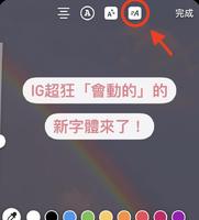 更新后的**,打字后会看到版面右上角会出现这个图案,点选这个图案就会出现文字的动画,随着字体不同,动画效果也不一样,以下就是9种字体的动画,是不是真的超实用!