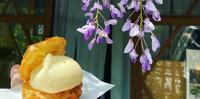 ?餐点:当天点了石窑泡芙(含税250日币)。泡芙的奶油非常香醇且浓厚,但却不会太过甜腻,属於很紮实的奶油,店员还有提醒说可以把泡芙上方的盖子拿开后,一边吸奶油一边吃能比较完美优雅地吃到最后~