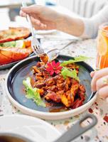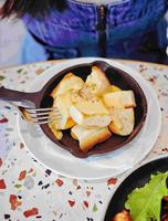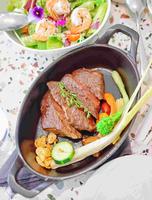 #美食?熔岩起司面包/?田园香橙鲜虾萝蔓沙拉/?烟燻BBQ章鱼#前菜几乎每桌都有的熔岩起司面包,一咬下浓郁起司香附着在烤的恰到好处的面包上,再加上切成一口大小的体贴,整个胃口已经被点燃?。沙拉的蔬菜量完全不用怀疑,香甜的香橙/饱满的大鲜虾/鲜翠的萝蔓,份量偏多,推荐沙拉不用一次吃完,因为到海陆主菜轮番上阵的时候跟着搭配还是很清爽且具有解腻的作用。烟燻的BBQ章鱼这道料理,是我没有吃过的前菜类型,配红花的漂亮摆盘,微辣的调味搭配清爽有嚼劲的烟燻章鱼,真的越吃越有胃口,这次前菜最推。