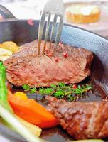 #10oz香煎厚切纽约客牛排我个人是很害怕太多血水、或是太难咀嚼的牛排,这次恰恰好刚好都避开我害怕的部分??,个人很喜欢水相推的-将切下来的牛排移到特别附的乾净的盘子上配上海盐的吃法,过去习惯吃搭配较重的调味的牛排,很快就腻了,这次难得的吃完了,海盐可以请服务生帮补喔。