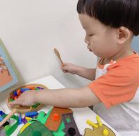 [放入同色毛球与木夹]