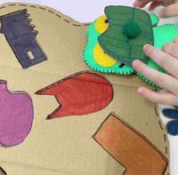 制作材料:纸箱、彩色笔、美工刀、毛球、保丽龙胶