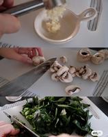 2、将大蒜碾碎,菠菜切碎,蘑菇切片,柠檬部分切片