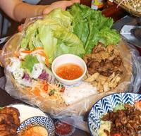 有炸排骨、凉皮春卷、凉拌木瓜丝、生菜、米线等等