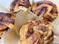 我本身很爱吃肉桂卷,但身边家人朋友很多都不爱?那天我带回家分我弟和我爸吃,原本他们都说吃一点点就好,没有很爱肉桂卷,结果没想到两位倒是吃得很开心!尤其是苹果口味,酸甜的糖渍苹果让口味更丰富了~而且我很喜欢刚烤完很蓬松的口感,当天我们就把这一盒吃光了哈哈哈哈