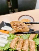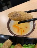口味部分,炸皮很酥脆,但因为椒麻鸡肉有腌渍过,椒麻鸡味道偏重口味,应该属於越式吧?口味比较淡的我没有那么喜欢。