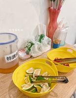 店内自助区有附柠檬瓣、辣椒等调味酱,