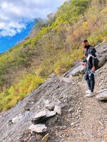 在没有携带登山杖的情况下捡了一支木棒来替代