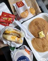 除了咸食早餐,麦当劳也有推出香甜口味的松饼早餐!松饼口感蓬松柔软,湿润度也恰到好处,再佐以奶油和蜂蜜点缀滋味,香香甜甜的吃起来也格外满足!