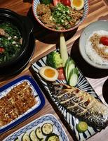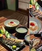 #鲭鱼定食鲭鱼烤的外层鱼皮微微酥脆肉质鲜嫩多汁,油脂香气四溢本身味道就很足但在沾上店家提供的胡椒盐会增添一股风味另外主餐附的小黄瓜|玉米笋|姜片使整道餐点更清凉爽口又解腻糖心蛋的生熟度比例恰到好处汤品喝完可以续加~~另外我们还点了