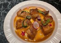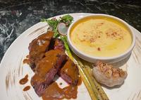 这里的餐点可以说是真正的色香味俱全,摆盘非常的乾净整齐,上面还有可食用小花朵,肉跟马铃薯泥可以配着随餐的面包一起享用,份量不少而且这个薯泥真的有够香,我们还因此续了一份面包。
