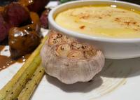 因为同行友人不敢吃三分,所以我们点了五分,虽然是选五分熟,中间的部分还是很粉嫩啾西,旁边直接附上半颗烤大蒜可以配着肉吃,这道牛排也有附一分薯泥,这份薯泥比较偏原味,不像法烧猪肉的有一些酱汁,但是两种都很好吃,是不一样的感觉~没有配面包也可以整碗直接嗑那种。