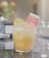 材料:酸奶味烧酒(其他味道也可)、苏打水、Yakult、柠檬片(可有可无)