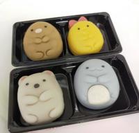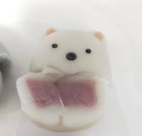 白熊的粉红色内馅是草莓牛奶口味,蜥蜴的淡黄色内馅则是白桃口味。如豆沙般的口感相当入口即化,但就味觉本身而言,要不是有看口味说明,我说不出确切吃下去的是什么味道,只觉得两者口味有差异,但一如往常是很甜的和菓子。
