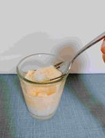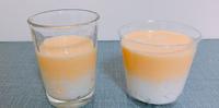 拿出玻璃杯先放牛奶泥放置五分钟再放蛋黄液
