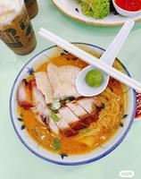 隐藏于茨厂街中华巷之中不得不提的绝对是让许多人着迷的咖喱面,香浓的咖喱汤汁满满浓郁的椰浆味扑鼻而来,配料给的也没有再手软的意思。一整碗丰富配料搭配面条和汤汁绝对是让中华巷持续络绎不绝的魅力。