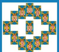 共需要抽出13张牌,对应到「黄道十二宫位」后,第13张主要说明「整体运势走向的牌」。十二宫对应宫位如下: