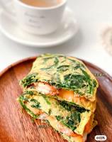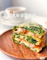 鸡蛋食谱推荐十二:芝士大虾菠菜蛋饼
