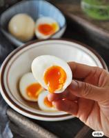 4、大约15分钟,鸡蛋完全冷却后捞出剥皮,小勺子把鸡蛋壳表面全部轻轻敲碎,然后开始剥皮,剥好后放入刚刚的酱油汁中泡一晚上就可以吃啦,着急吃的话泡2小时,冷藏在冰箱里可以保存3-5天呢