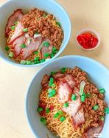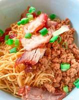 满满的肉碎与薄片红叉烧,搭配口感Q弹的面条,简单的材料却让你忍不住一口接一口!当中必备的酱料如猪油、蒜油以及葱油,根本就是面的灵魂啊!最后撒上葱花,真的让人太难抗拒了!